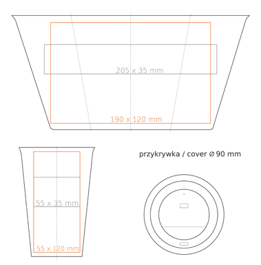 Nadruk wewnątrz (ścianka) (30x20 mm) Nadruk złotem Nadruk srebrem Nadruk przez rant Personalizacja |
