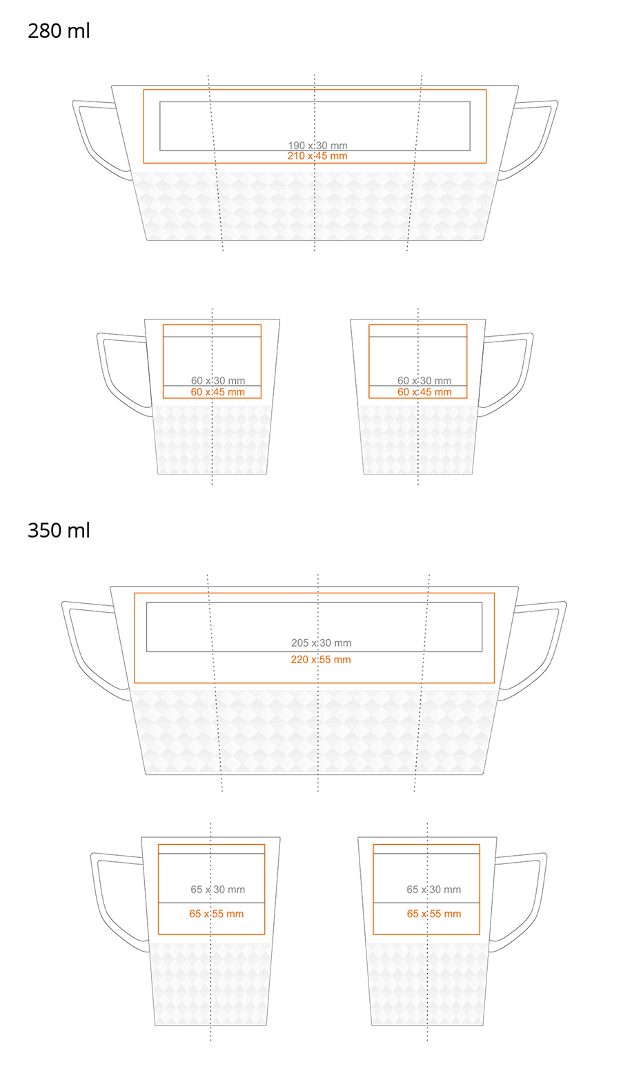 * W przypadku projektów wybiegających poza standardową powierzchnię nadruku prosimy o kontakt z działem handlowym.
