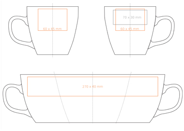 Nadruk na uchu Nadruk wewnątrz (ścianka) Nadruk na dnie (wewn.) Nadruk na spodzie (zewn.) Zdobienie paskiem Zdobienie powierzchni obłej Hand Made - malowanie rantu Personalizacja |