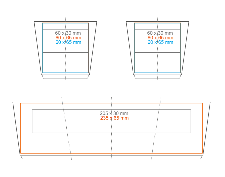 * W przypadku projektów wybiegających poza standardową powierzchnię nadruku prosimy o kontakt z działem handlowym.